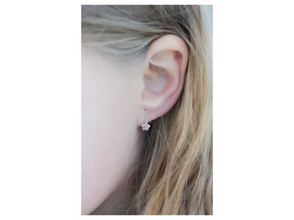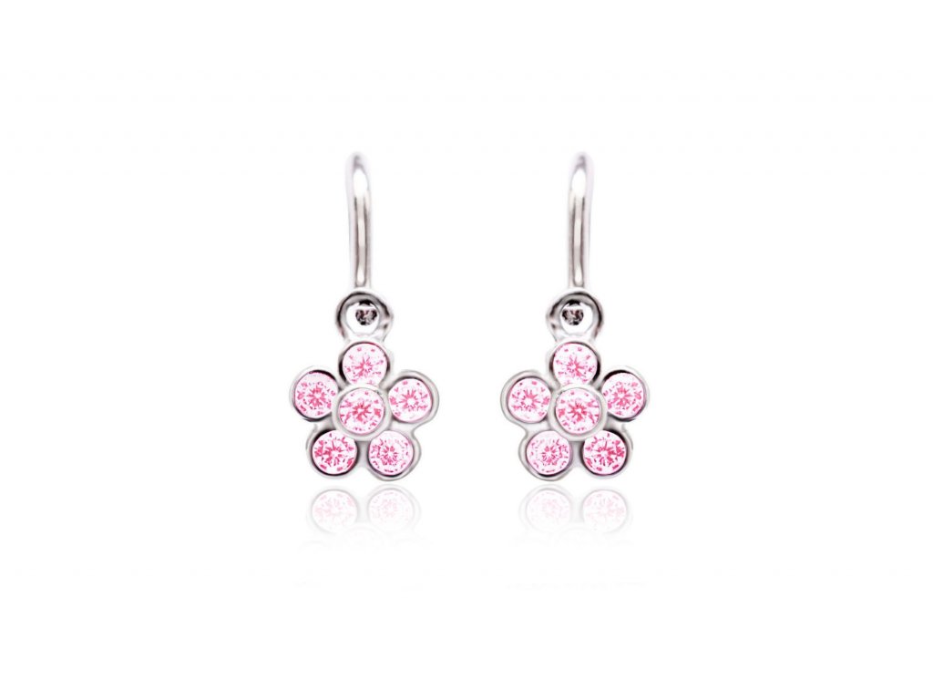 Kvetinkové náušnice DU 35005 z bieleho zlata s ružovými kamienkami, zapínanie brizúra