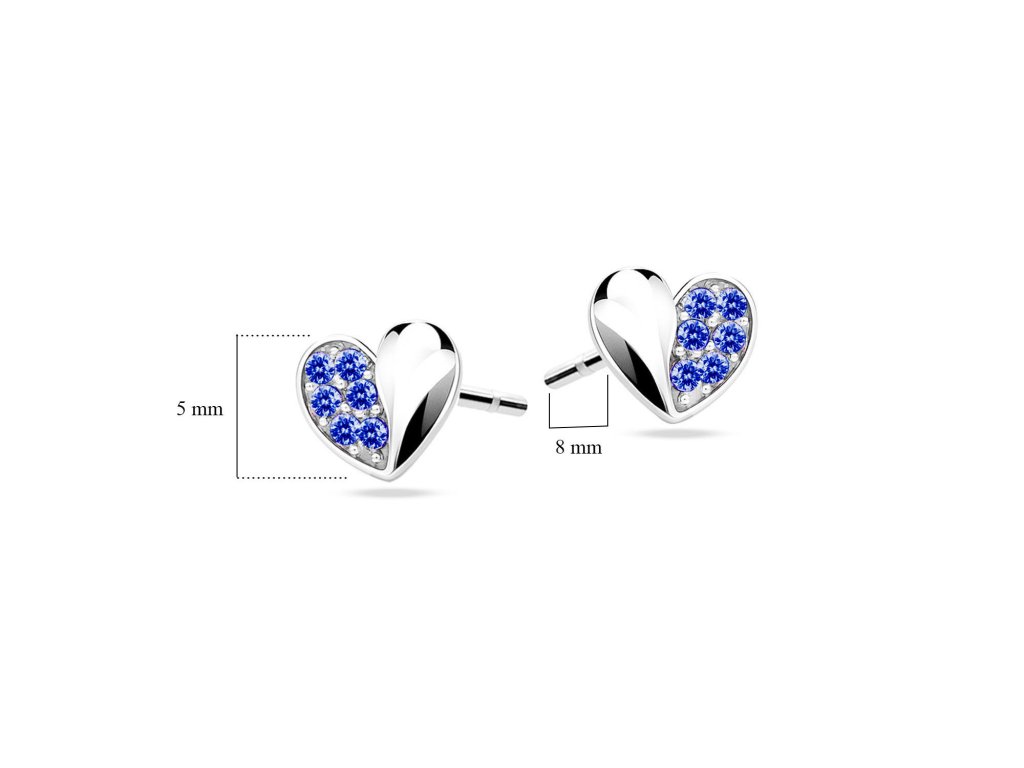 Srdiečkové náušnice DU 70585 z bieleho zlata s tmavo modrými kamienkami, zapínanie balónik