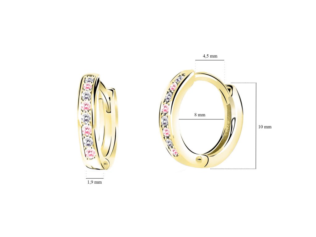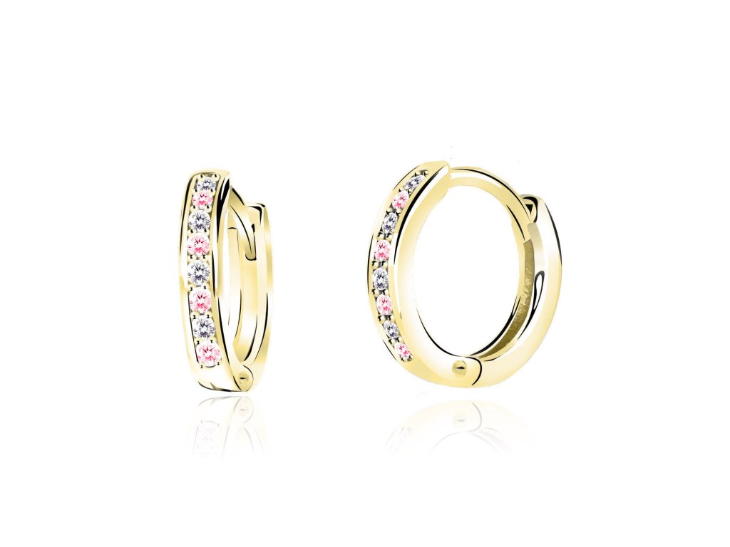 Detské náušnice krúžky DU 32139 zo žltého zlata s bielymi a ružovými kamienkami