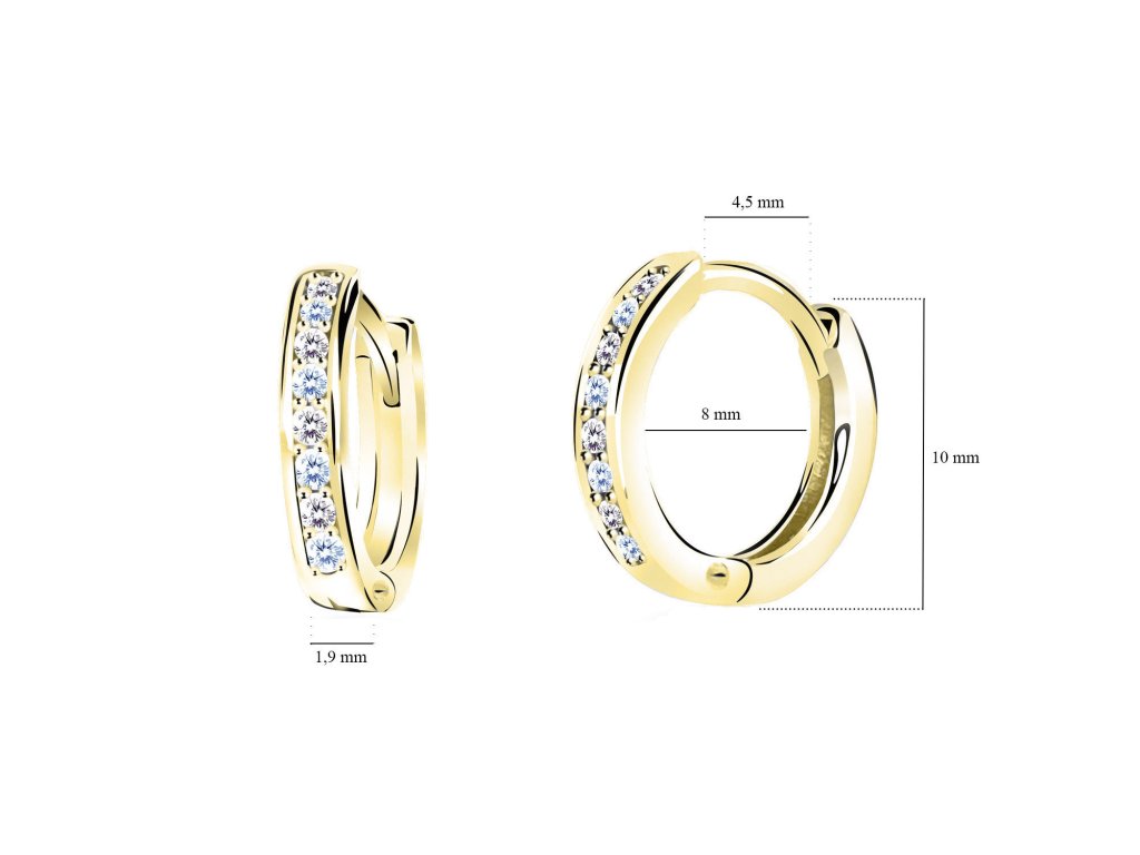 Detské náušnice krúžky sú vyrobené zo žltého zlata s bielymi a svetlo modrými zirkónovými kamienkami. Zlaté náušnice sú opatrené puncovou značkou 585/1000 od štátneho puncového úradu. Tieto náušnice sú vhodné na každodenné nosenie a podčiarknu jemnú detskú tvár. Rozmery výrobku sú detailne zobrazené v produktovej doplňujúcej fotografii. Náušnice pre Vás vyrábame ručne za použitia tradičných metód. Náušnice Vám dopravíme v originálnej krabičke.