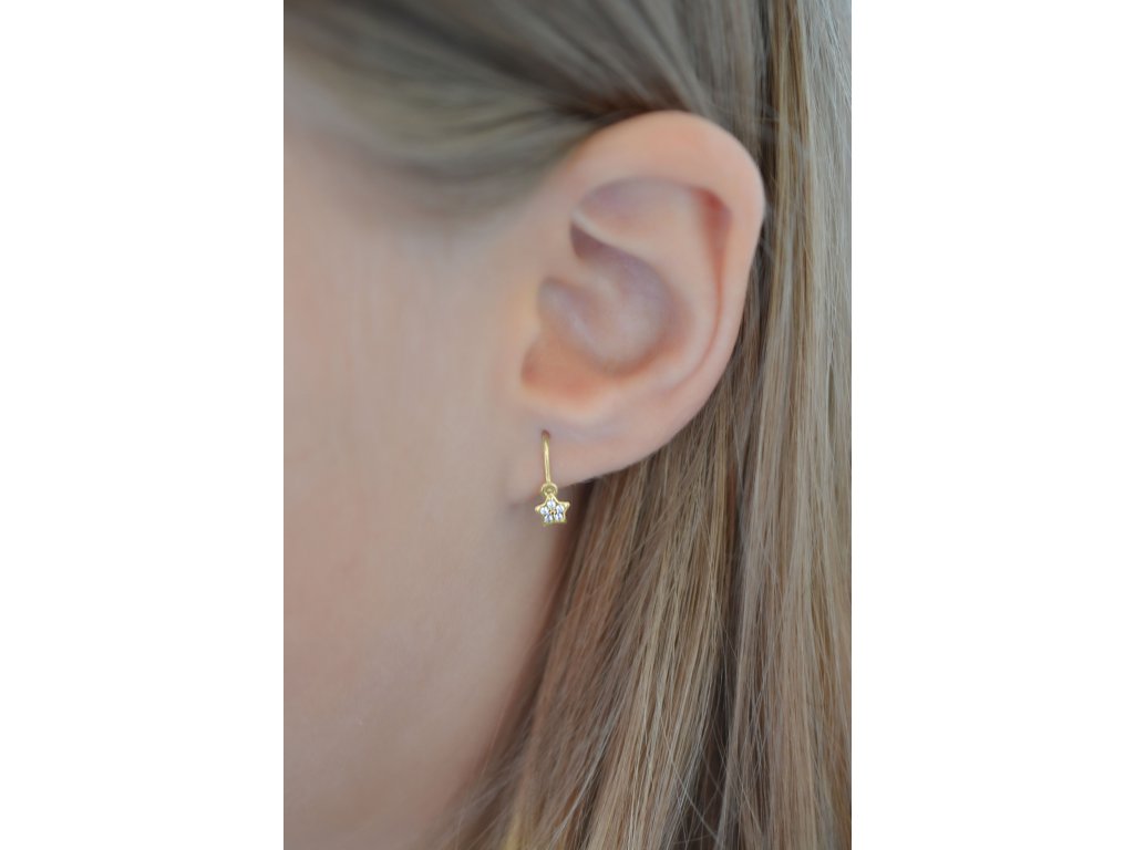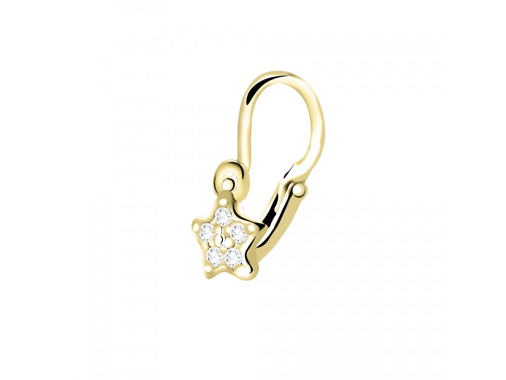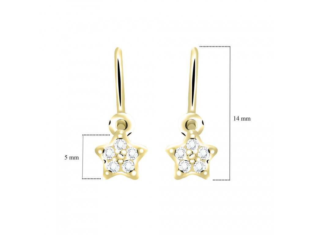 Náušnice hviezdičky DU 70567 zo žltého zlata s bielymi kamienkami, zapínanie brizúra
