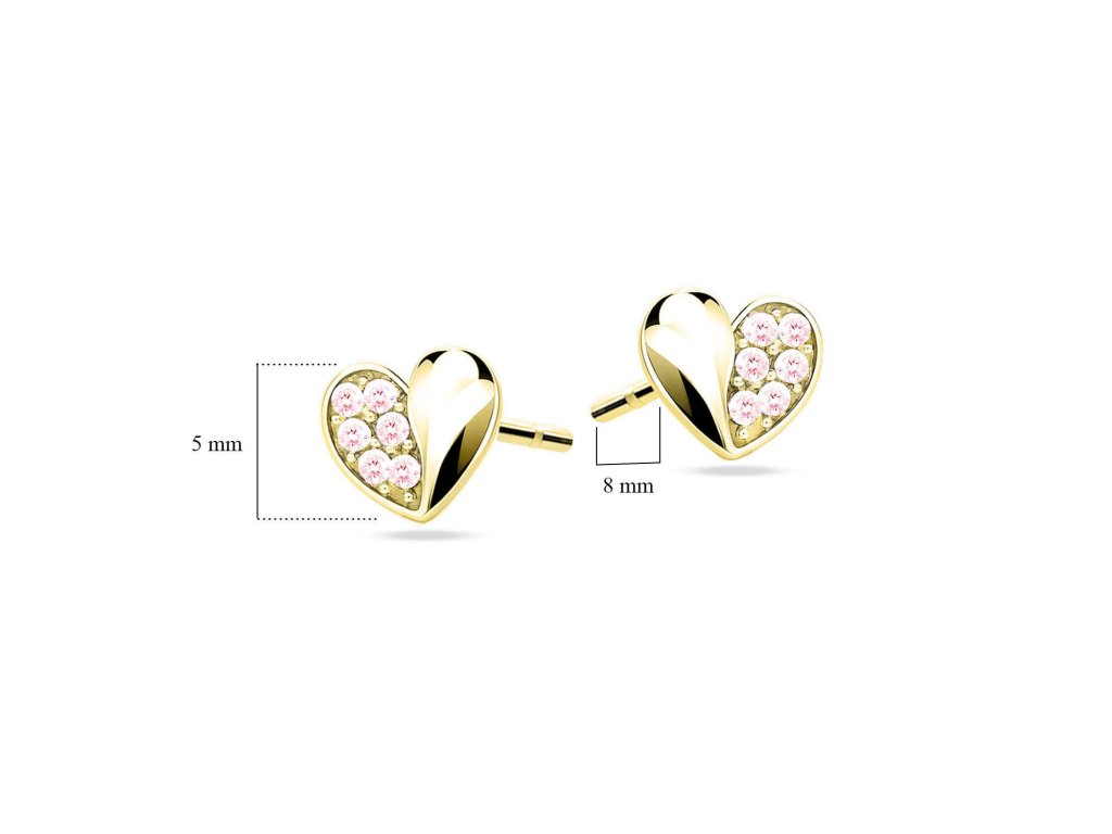 Srdiečkové náušnice DU 70585 zo žltého zlata s ružovými kamienkami, zapínanie balónik