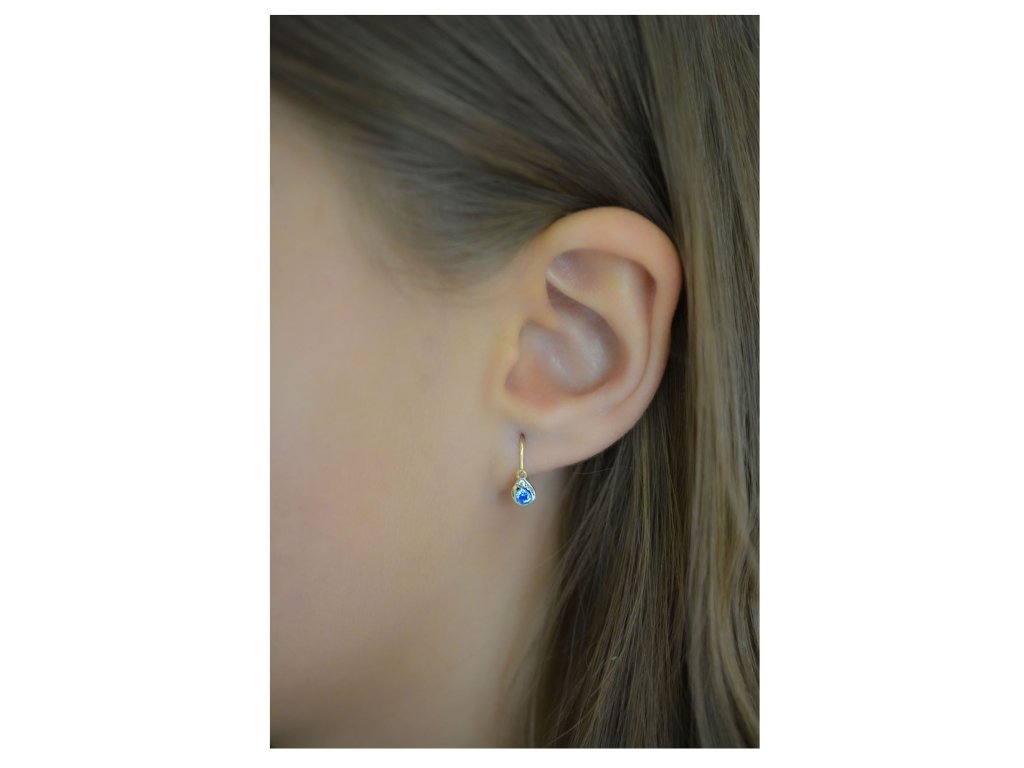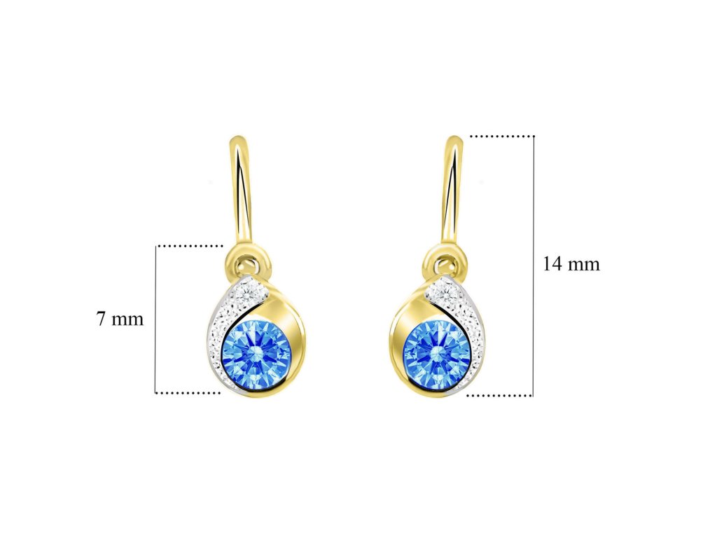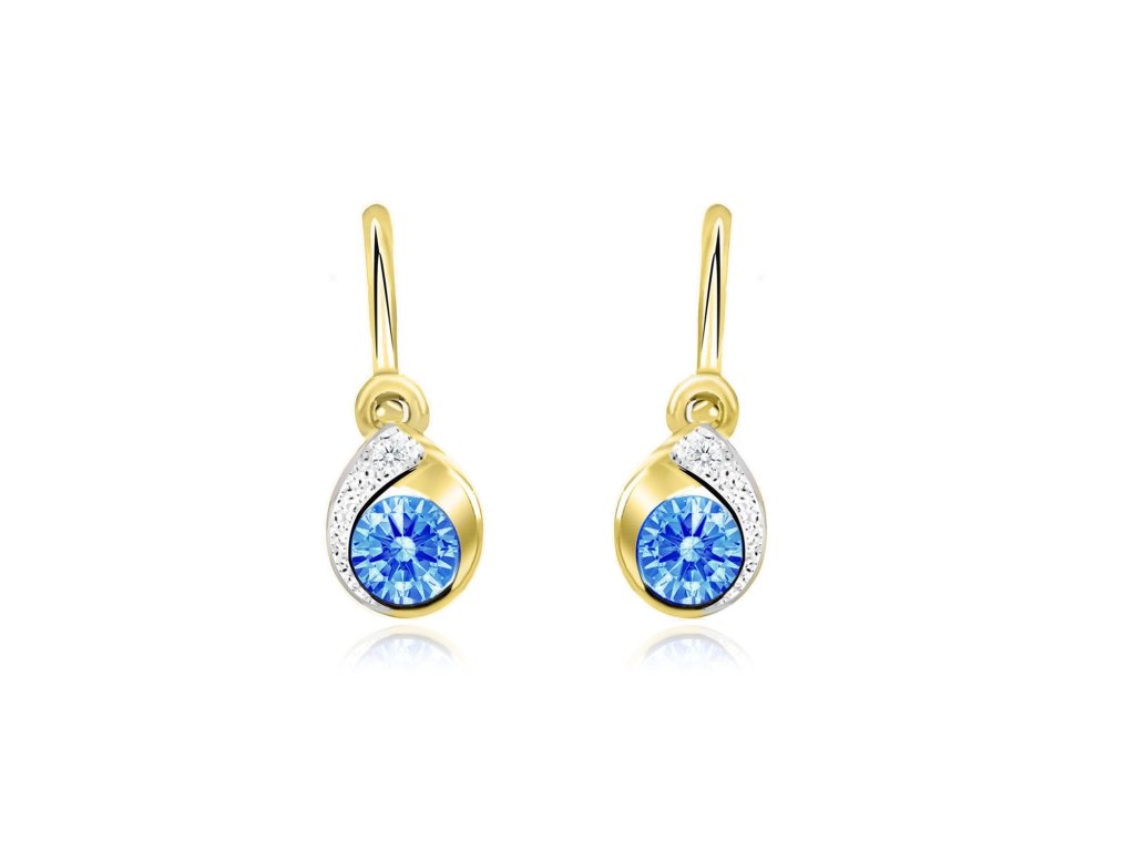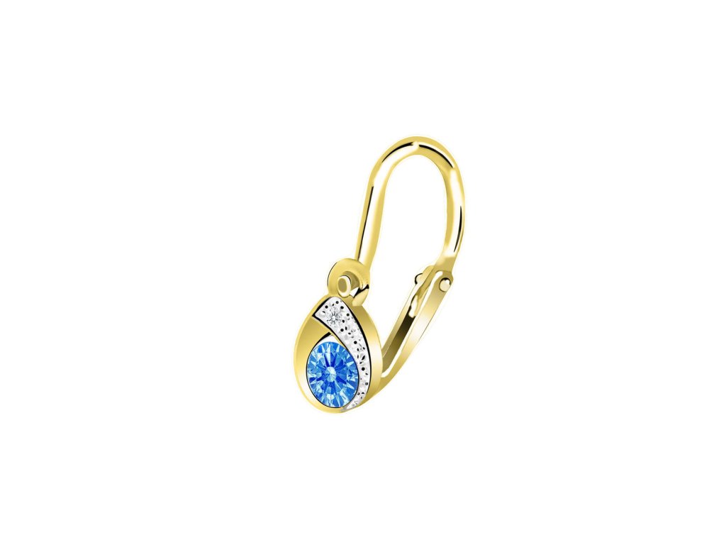 Detské náušnice slzy DU 70544 zo žltého zlata s tmavo modrými kamienkami, zapínanie brizúra
