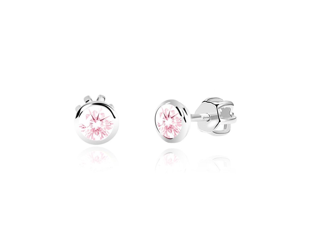 Náušnice DU 32137 okrúhle z bieleho zlata s ružovými kamienkami, zapínanie balónik