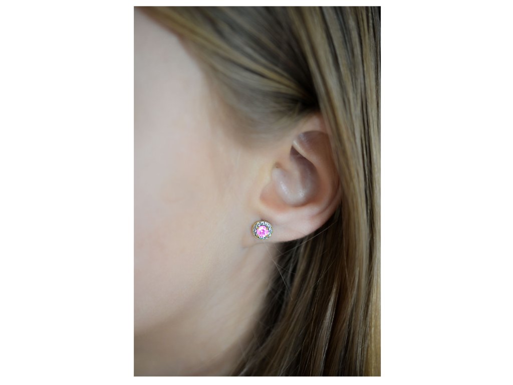 Dievčenské náušničky so zapínaním na balónik sú vyrobené zo žltého zlata a osadené ružovými kamienkami uprostred a bielymi okolo. Zlaté náušnice sú opatrené puncovou značkou 585/1000 od štátneho puncového úradu. Tento typ zapínania je najlepším výberom pre dievčatká, ktoré už odrástli bábätkovským náušničkám. Rozmery výrobku sú detailne zobrazené v produktovej doplňujúcej fotografii. Náušnice pre Vás vyrábame ručne za použitia tradičných metód. Náušnice Vám dopravíme v originálnej krabičke.